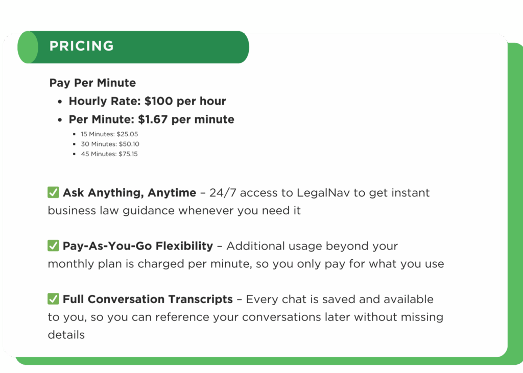The AI is trained on real business law expertise, delivering guidance built from years of proven legal experience.